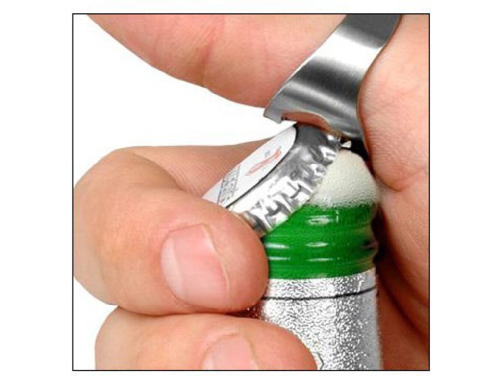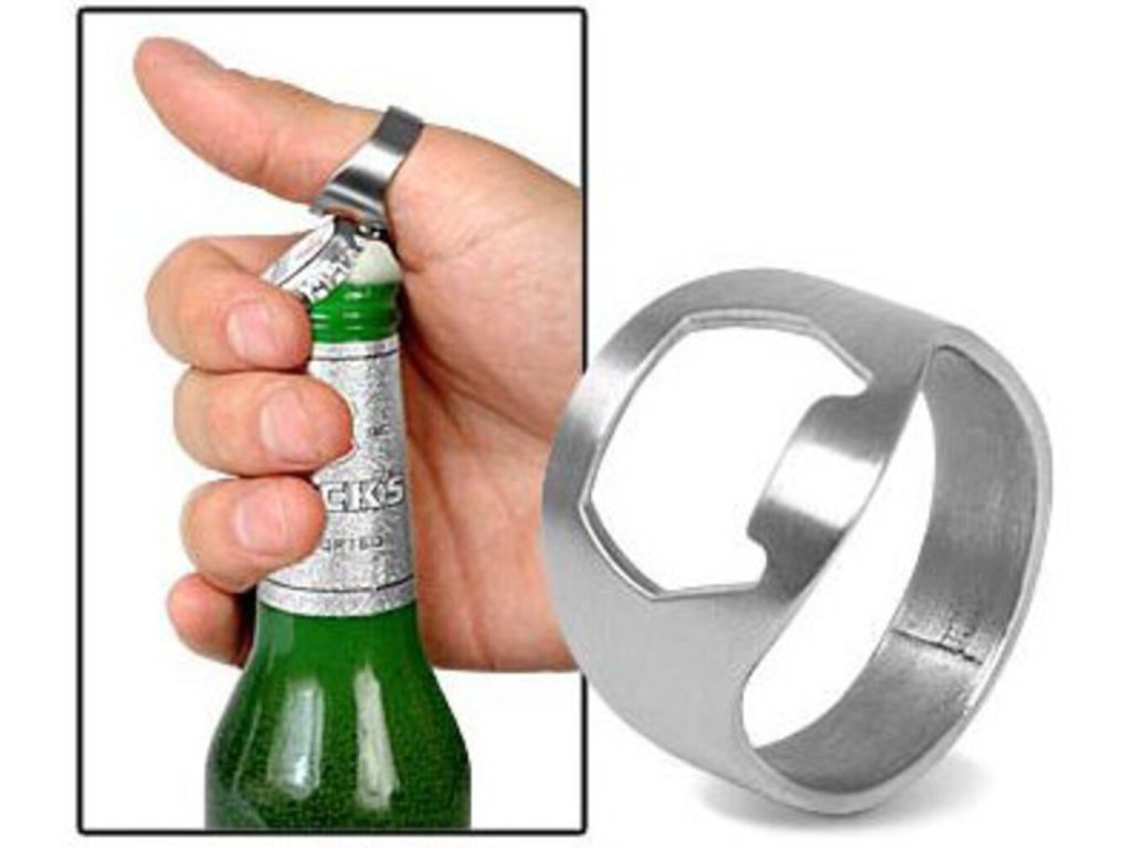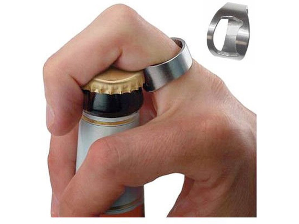 Každému sa už na párty stalo, že si chcel otvoriť fľašu svojho obľúbeného pitia a nemal čím. Vďaka tomuto prsteňovému otváračovi sa vám to už nikdy nestane. Jedná sa o jednoduchý prstienok s otváračom na spodnej strane. Nielenže nebudete závislí od iného otvárača, ale tiež budete vyzerať, že otvárate fľaše bleskurýchlo a iba rukou.
