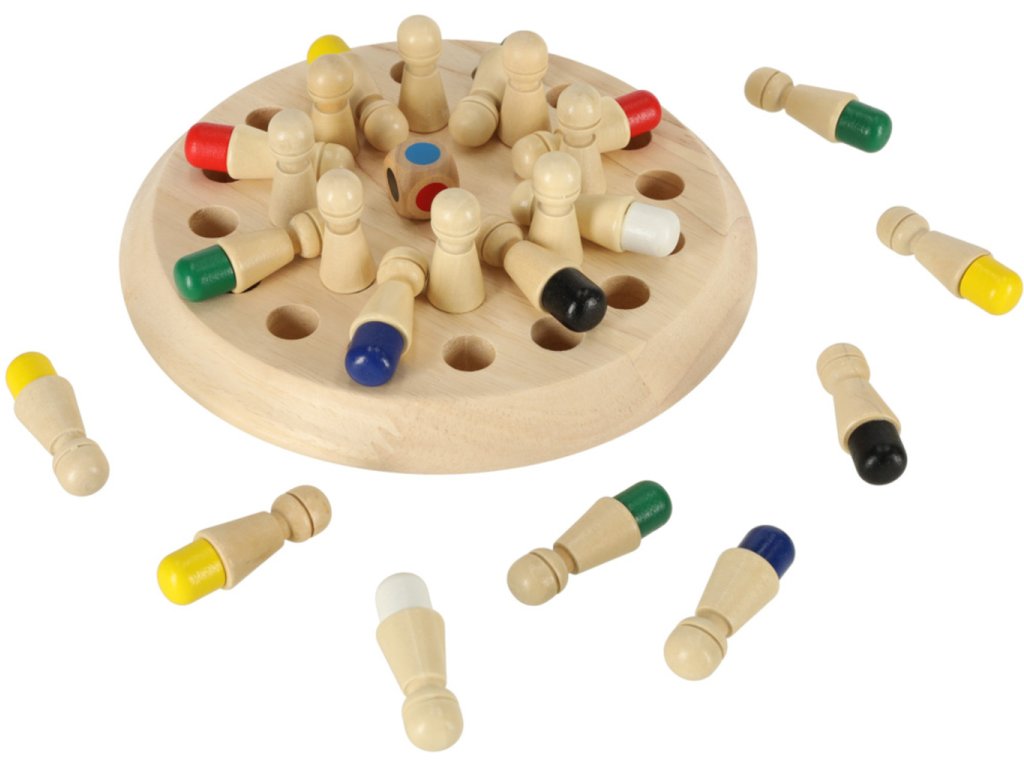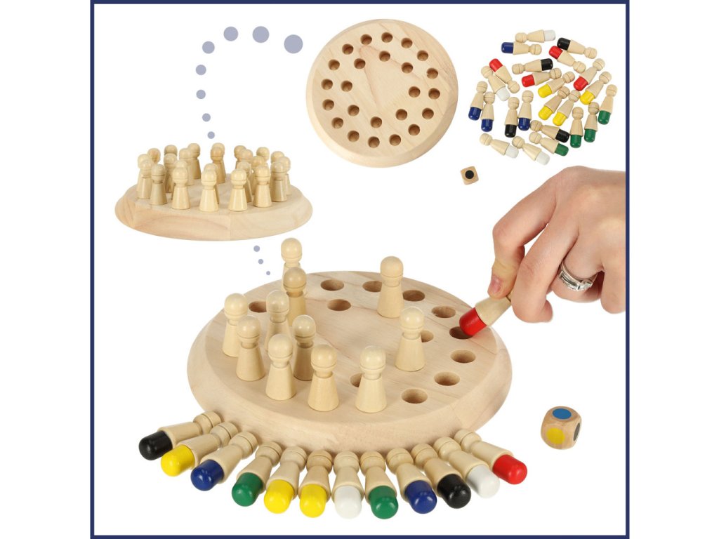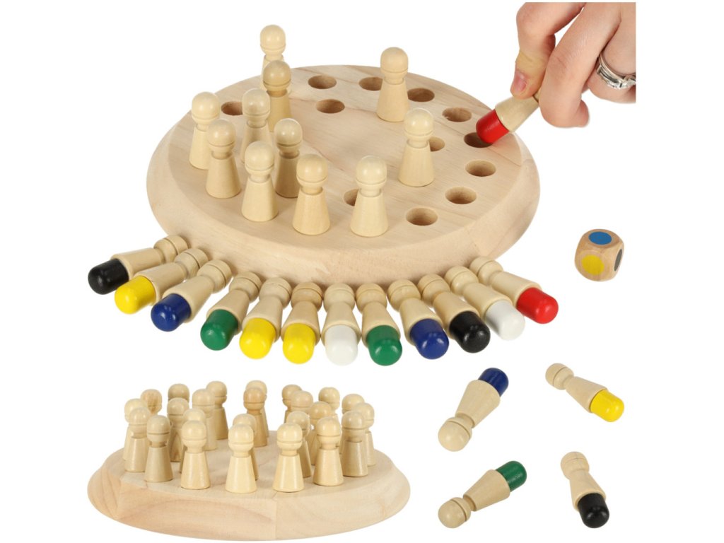 Pamäťová hra pre detiKlasická pamäť vo vynovenej verzii! Logická hra na precvičenie pamäte a koncentrácie! Malé prvky zlepšujú úchop malých rúk. Hra zároveň rozvíja koordináciu ruka-oko. Hra precvičuje postreh a koncentráciu. Všetky prvky sú vyrobené z dreva. Základňa, pešiaci a kocky boli starostlivo vyleštené a chránené, aby hru nerušili žiadne triesky. Na maľovanie pešiakov boli použité bezpečné, ekologické farby na vodnej báze. Je to skvelá ponuka pre rodičov a opatrovateľov, ktorým záleží na životnom prostredí a hľadajú pre svoje deti hračky z prírodných materiálov. Drevená hra zaujme aj tých, ktorí sa zaujímajú o filozofiu Montessori, podľa ktorej sa deti učia a spoznávajú svet prostredníctvom hry. Prostredníctvom vlastných aktivít získavajú praktické zručnosti a rozvíjajú svoje mentálne schopnosti.