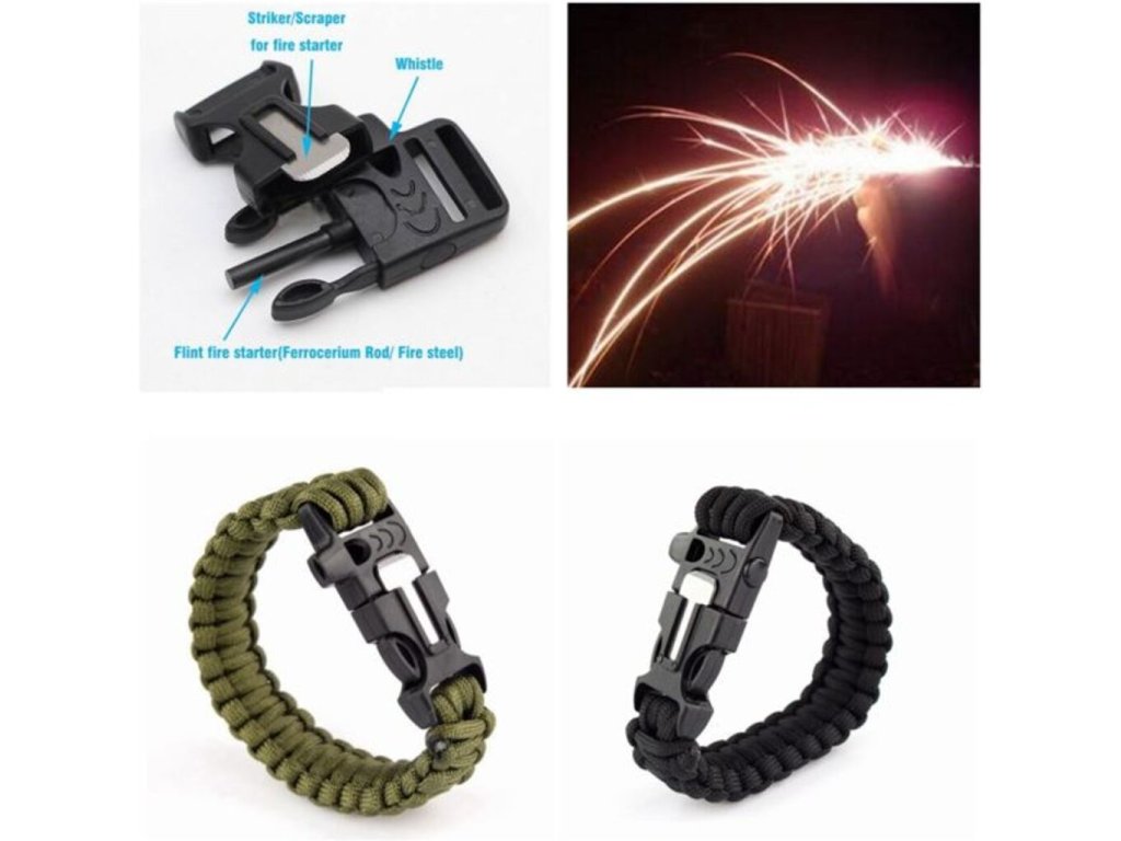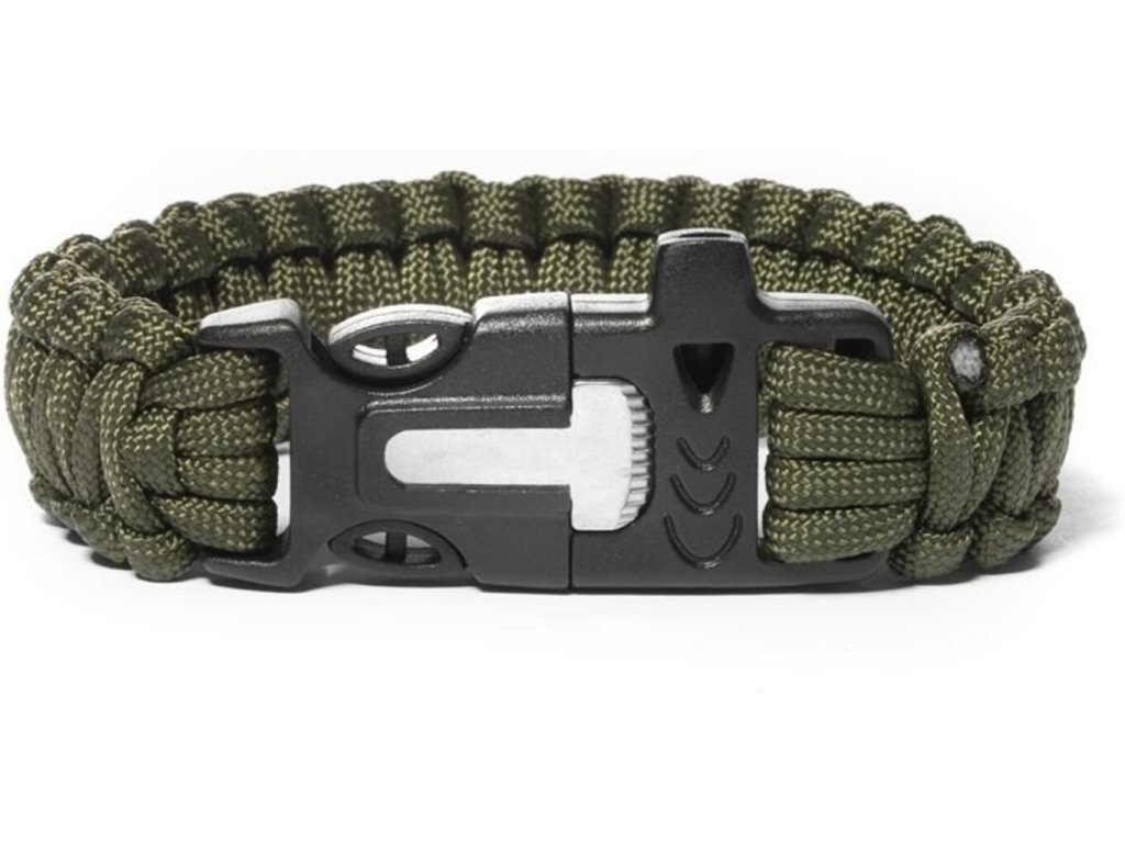 Tento praktický pletený náramok Paracord Vám môže pomôcť v núdzových situáciách. Nikdy neviete, čo sa môže prihodiť. Vďaka tomuto Pracarod náramku 3 v 1 si zaistíte potrebné veci na prežitie, ako sú napríklad mini čepeľ , píšťalka na záchranu, ktorá je počuť na veľkú vzdialenosť, alebo kresadlo na rozloženie ohňa. Náramok prežitia Vám pomôže v prípade núdze. Okrem praktického využitia je pletený náramok aj štýlovým módnym doplnkom, ktorý môžete nosiť všade sebou. Paracord náramok 3 v 1-zelený je originálny darček pre prežitie .