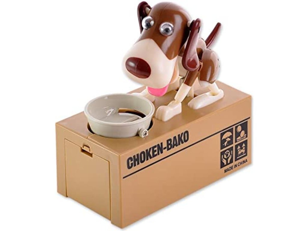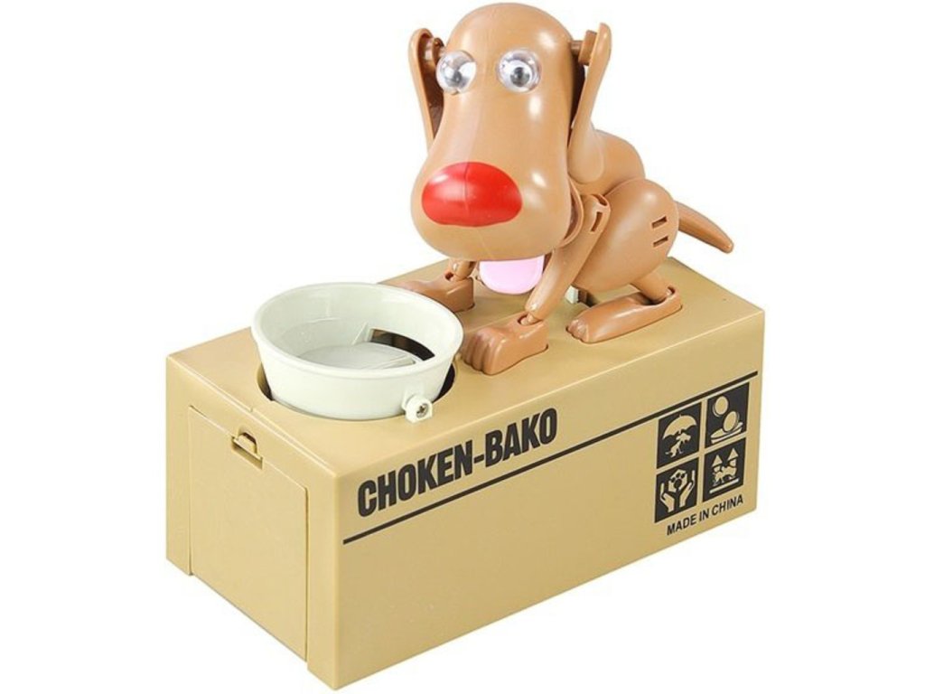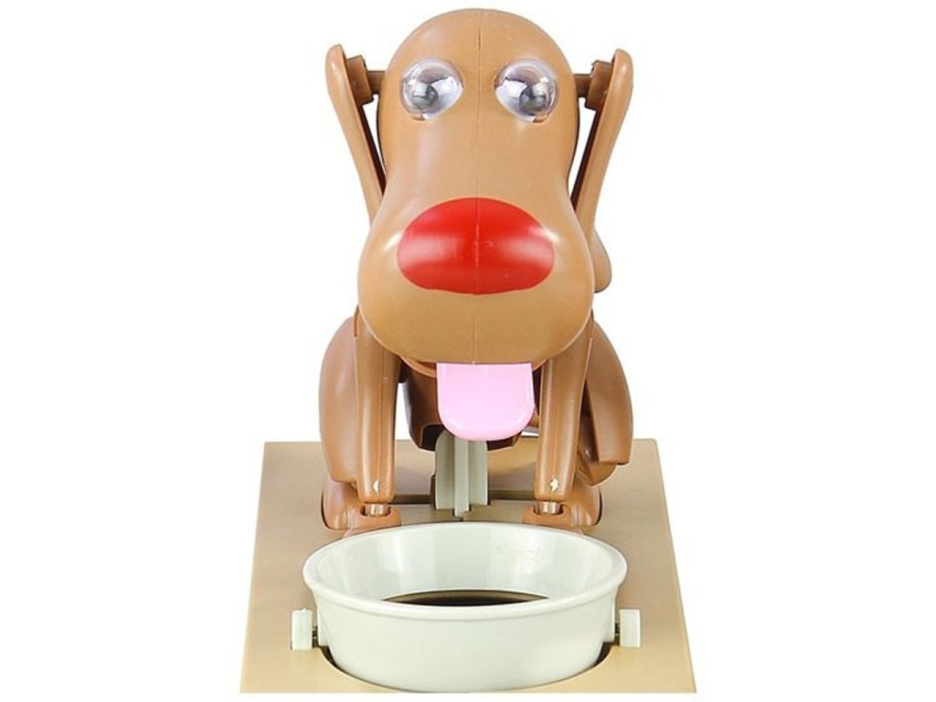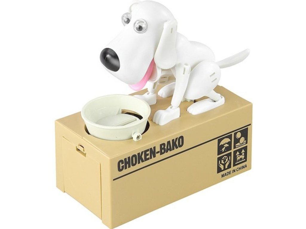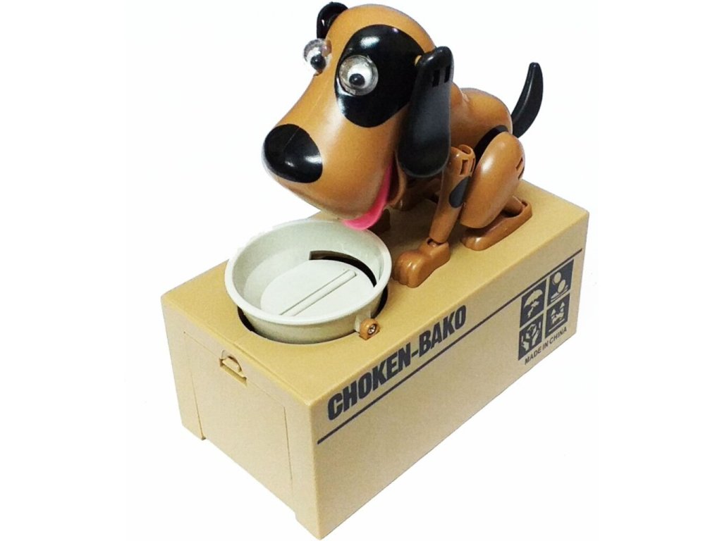 Potešte svoje deti touto roztomilou pokladničkou na drobné so psíkom . Tento psík je veľmi hladný a keď mu dáte drobné , zlupne ich ako malinu. Pri jedení mince vydáva psík hlasné zvuky, aby ste vedeli aký veľký má hlad. Tento roztomilý zážitok si zaiste nenecháte ujsť a pre Vaše deti bude tento malý psík skvelou motiváciou, ako šetriť peniaze. Dajte psíkovi mincu do mištičky a uvidíte, s akou chuťou ju zlupne. Psíkova pokladnička na drobné je originálny darček pre deti .