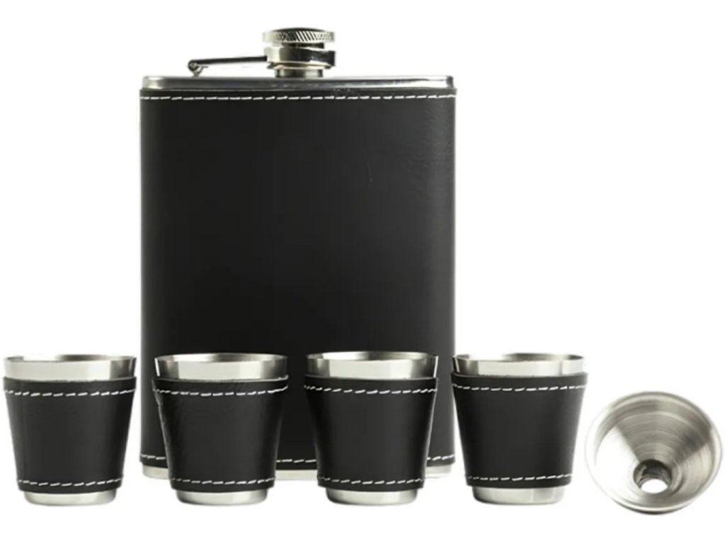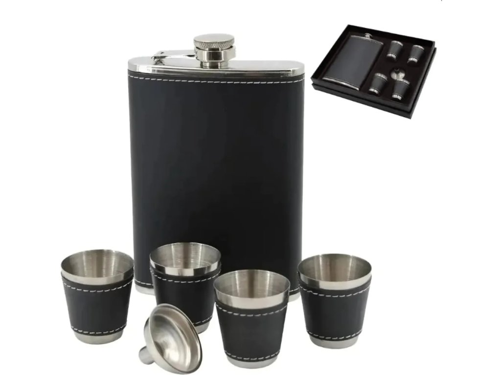 Štýlová čierna ploskačka z ekokože – 270 ml + 4 nerezové poháriky. Užite si svoj obľúbený nápoj kdekoľvek s touto elegantnou, 270 ml kovovou ploskačkou. Dokonalá kombinácia štýlu a funkčnosti, vyrobená z nerezovej ocele, je ideálna pre všetky vaše dobrodružstvá. Bezpečné uzavretie zabezpečuje kovový uzáver, takže sa nemusíte obávať žiadnych nechcených únikov. Súčasťou sady sú tiež štyri vysoko kvalitné nerezové poháriky, dokonale zabalené v praktickom puzdre z ekokože. Vďaka kompaktnej veľkosti ich môžete ľahko vziať so sebou kamkoľvek – či už sa chystáte na outdoorovú túru, kolaudačnú oslavu, alebo len relaxovať v záhrade. Táto sada je nielen funkčná, ale aj esteticky príťažlivá, vďaka čomu sa stane skvelým spoločníkom pre akúkoľvek príležitosť – doma aj vonku.
