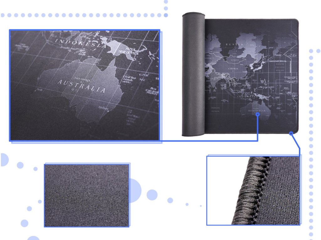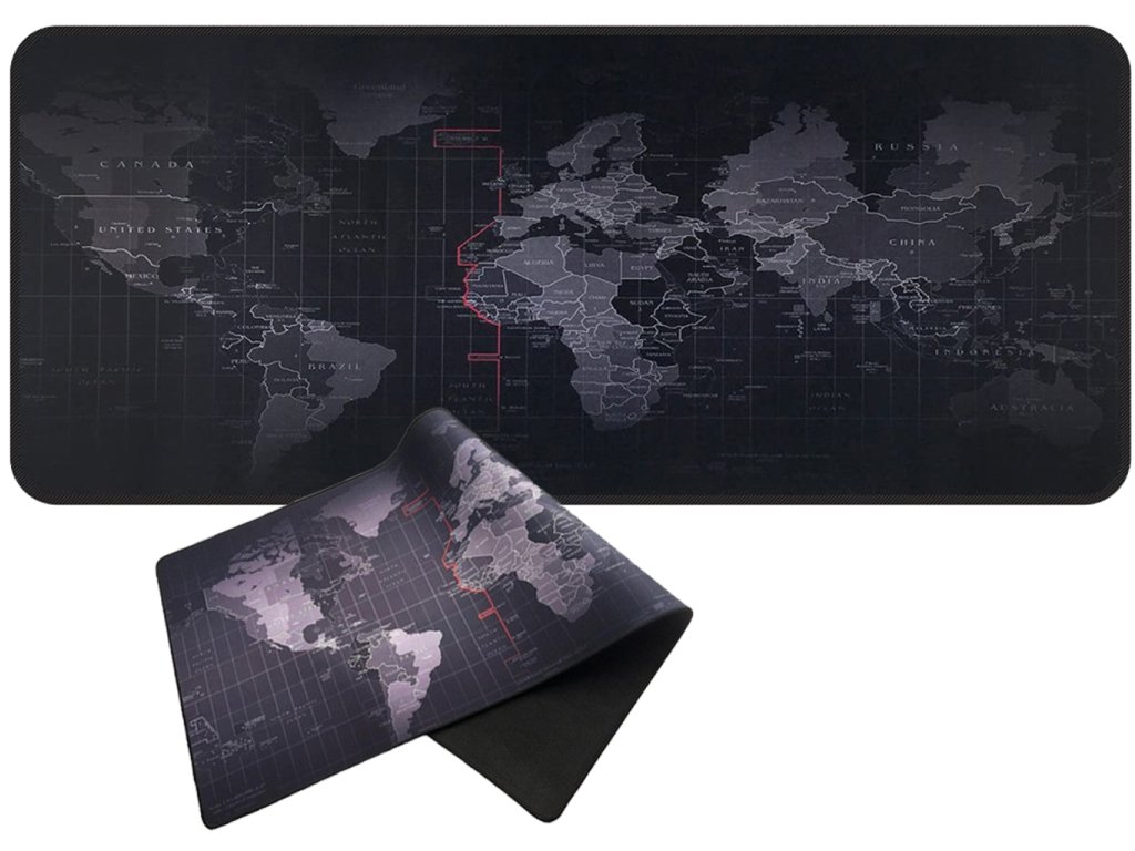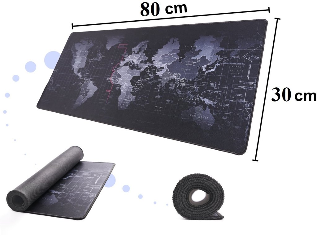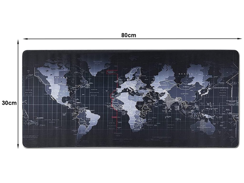Obrovská podložka na stôl s originálnym designom. Mapa sveta Vám zaplní celú pracovnú plochu a ochráni stôl pred poškodením. Na mape sú označené názvy krajín a časových pásiem. Táto podložka pod myš je ideálnym vzdelávacou, ochrannou aj funkčnou plochou . Vysoko kvalitný povrch a spracovanie vrchnej vrstvy podložky - je vyrobená z nepremokavej tkaniny , ktorá zaisťuje presnosť pohybov myši a znižuje trenie medzi myšou a povrchom. Spodná strana podložky má protišmykovú úpravu a zaručuje stabilitu podložky na jednom mieste. Jej výška iba 4 mm Vám dáva komfortný pocit pohodlia počas užívania. Vďaka jej vlastnostiam môžete túto podložku vždy udržať v čistote. Ideálny darček nielen pre hráčov.