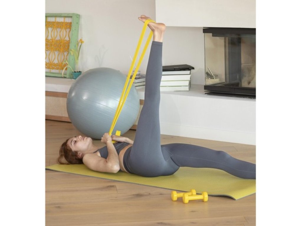 Obsahuje penové rukoväte, tašku na prenášanie, zarážku na dvere a popruhy na členky