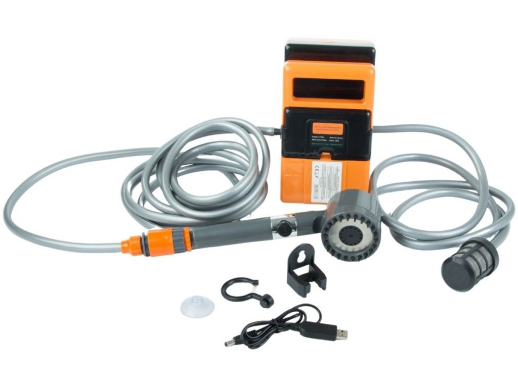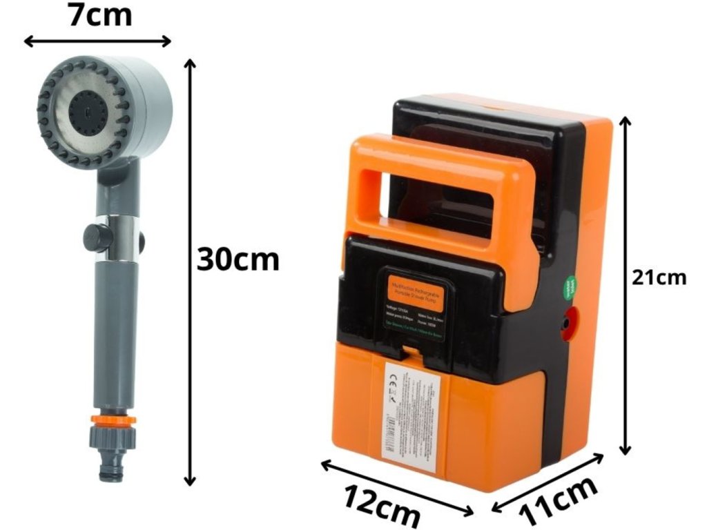Objavte slobodu a komfort čistoty kdekoľvek a kedykoľvek s našou prenosnou elektrickou sprchou! Ideálna pre cestovateľov, kempingových nadšencov, plážových milovníkov aj vodičov, ktorí si užívajú život v pohybe. Zabudnite na kompromisy – všetko, čo potrebujete, je nádoba s vodou a USB pripojenie. Naša sprcha sa veľmi jednoducho aktivuje jednoduchým stlačením tlačidla a jej flexibilná hadica s vodným filtrom vám zaručí čistý a stabilný tlak vody. Predstavte si ten pocit osvieženia po dni plnom dobrodružstiev! Už žiadne starosti s prístupom k tečúcej vode. Vďaka kompaktnému dizajnu a možnosti napájania z powerbanky alebo notebooku je to tá správna voľba pre všetkých, ktorí chcú komfort bez kompromisov. Využite našu sadu s prísavným držiakom a háčikom a zaveste sprchu, kde sa vám zapáči. Perfektná pre kempovanie, umývanie auta, bicykla aj domácich miláčikov. Doprajte si čistotu s pohodlím. Objednajte si ešte dnes!