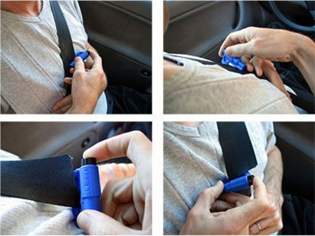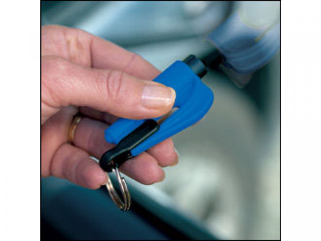 - Pomáha prerezať bezpečnostný pás, privolať pomoc, rozbiť sklo