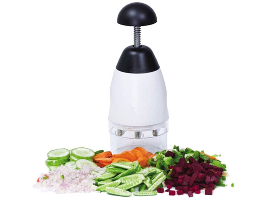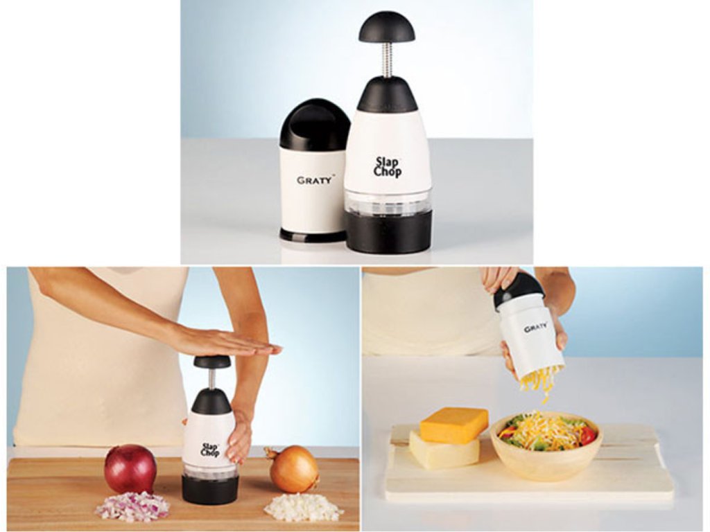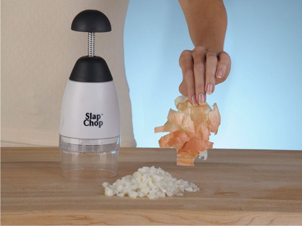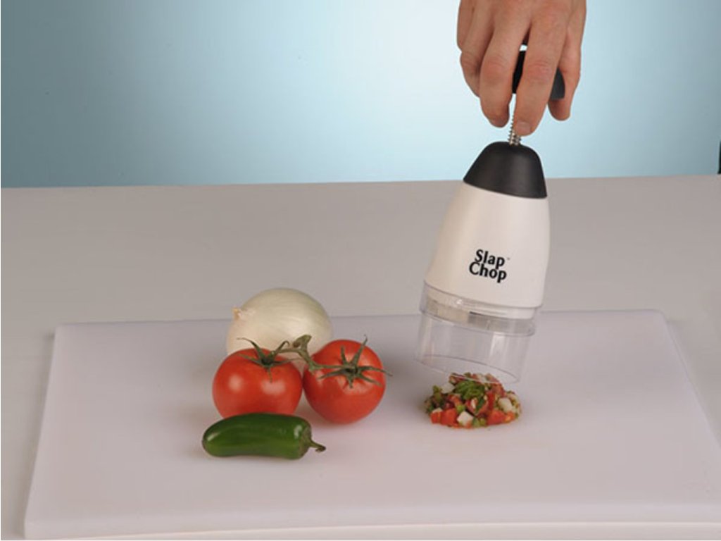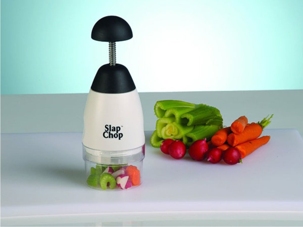 Už Vás nebaví stále krájať ovocie a zeleninu ručne? Chcete ušetriť veľa času? Zaobstarajte si Ručný krájač Slap Chop. Ručné krájače Slap Chop má nerezové čepele. S ručným krájačom môžete pripraviť čerstvý šalát behom pár minút. Ručný krájač je ideálnym pomocníkom do každej kuchyne. S ručným krájačom Slap Chop môžete porciovať potraviny, krájať zeleninu a ovocie. S krájačom môžete krájať aj syry alebo varené zemiaky. Naporciujte si zeleninu na väčšie či menšie kúsky a pripravte tak skvelé pokrmy. Ručný krájač Slap Chop môžete kúpiť ako darček začínajúcemu kuchárovi .