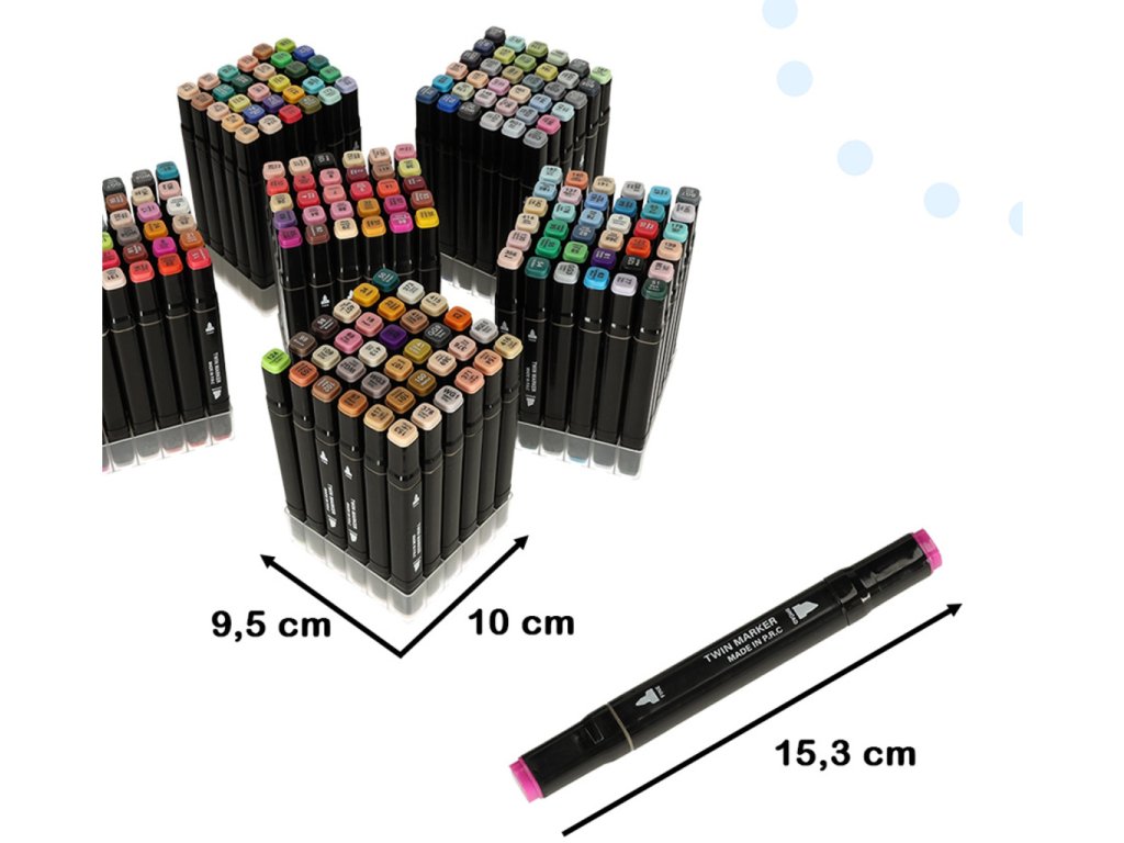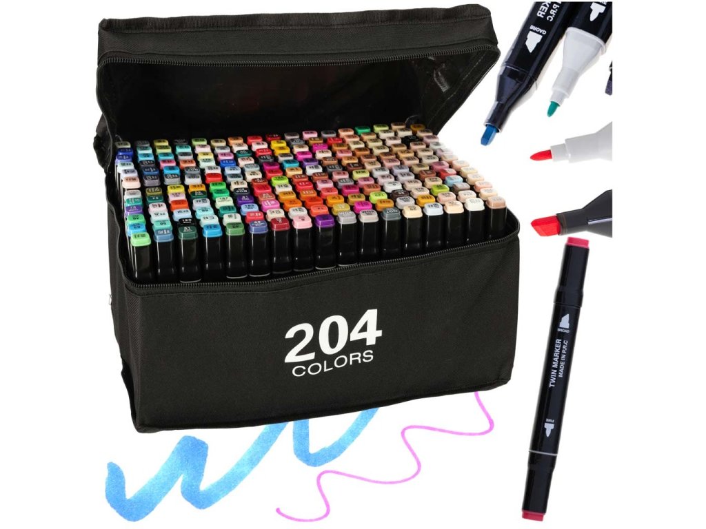 Sada oboustranných fixů 204 ks je ideální volbou pro kreativní projekty, od jemných skic až po intenzivní kolorování. Fixy jsou vybaveny dvěma typy hrotů – jemným pro přesné detaily a širokým pro rychlé vybarvování větších ploch. Fixy s alkoholovým inkoustem nabízejí intenzivní a dlouhotrvající barvy odolné proti vyblednutí a vodě. Rychleschnoucí složení minimalizuje rozmazání, a díky vysoké výdrži náplně zvládnou až 300 metrů kreslení. Sada oboustranných fixů 204ks zahrnuje také praktické etui s organizérem, což zajišťuje dokonalý přehled o všech barvách.