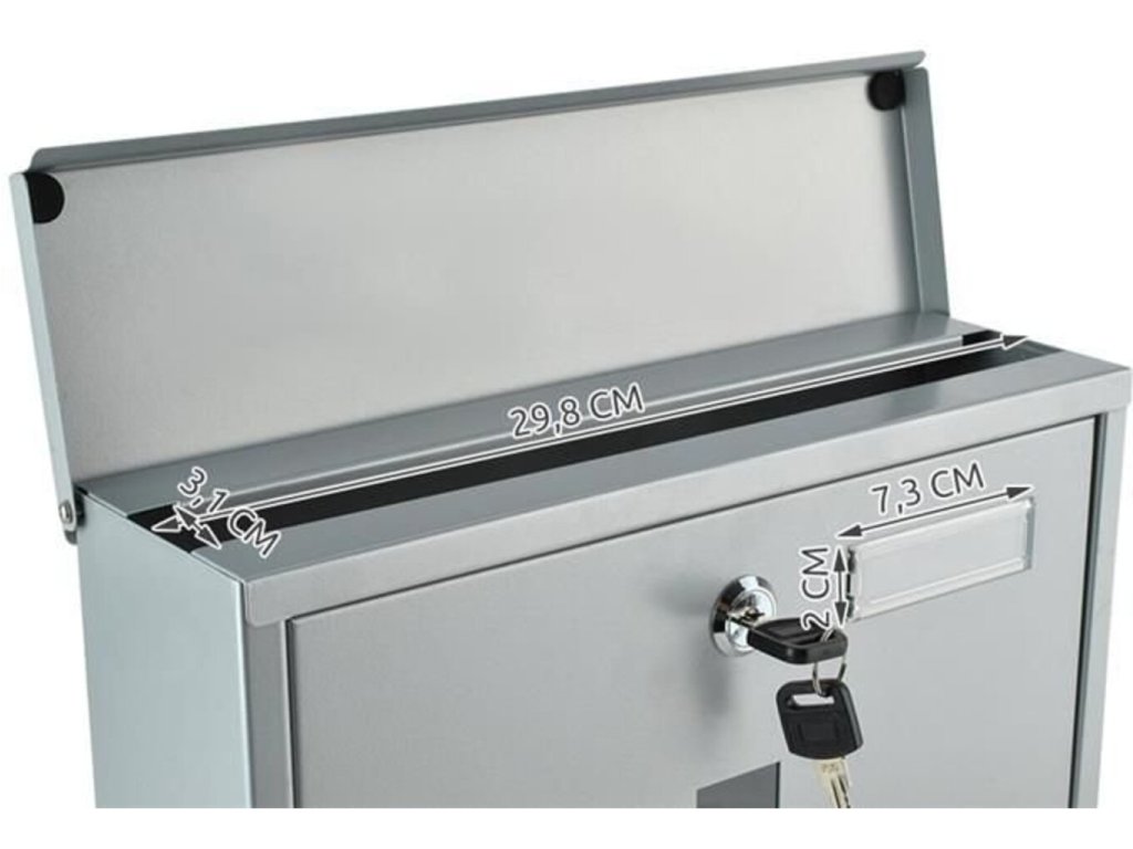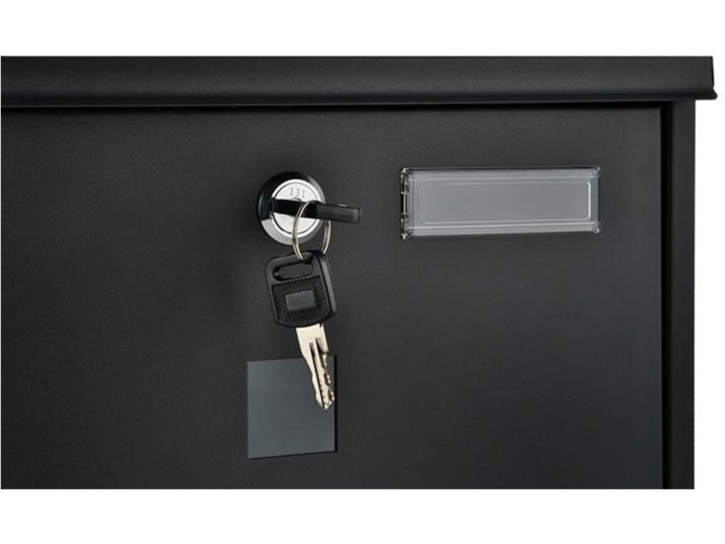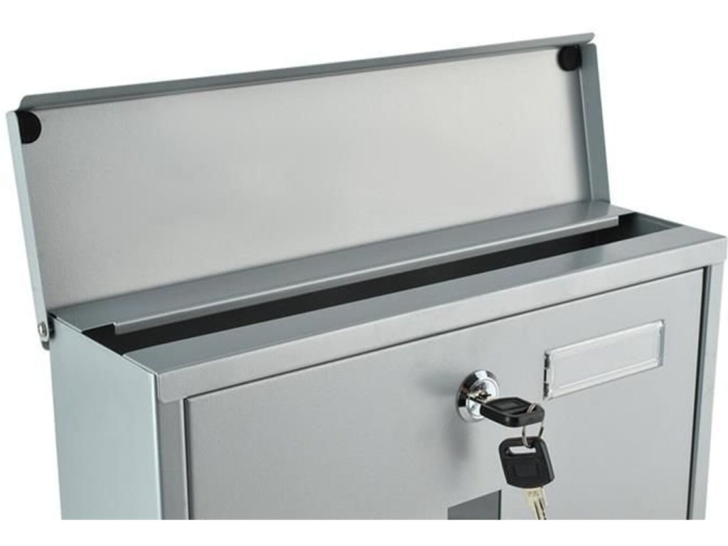 Poštová schránka má kryt, ktorý chráni jeho interiér pred poveternostnými vplyvmi. To je dôležité najmä pri klasických listoch a pohľadniciach, ktoré nie sú vodotesné a mohli by sa poškodiť, ak prídu do styku s vlhkosťou. Krycia klapka sa usadzuje na dvoch gumových podložkách, čo znamená, že ani pri voľnom páde nespôsobuje nadmerný hluk a nebezpečenstvo pre povrch skrine. Ľahko zdvihnutá klapka má špeciálne profilovanú hranu, ktorá zlepšuje jej otváranie. Okrem toho spôsobuje, že voda prúdiaca cez škatuľu alebo dážď sa nedostane k hornej medzere medzi dverami a skriňou, a tak voda nepreniká do stredu. Okrem toho sú v konštrukcii skrine vetracie otvory, ktoré umožňujú cirkuláciu vzduchu a odparenie prebytočnej vlhkosti prirodzeným spôsobom, ktorý sa hromadí a usadzuje na stenách uzavretých objektov na vonkajšej strane. Schránka je zaistená špeciálnou záložkou, ktorá chráni korešpondenciu s poveternostnými podmienkami.