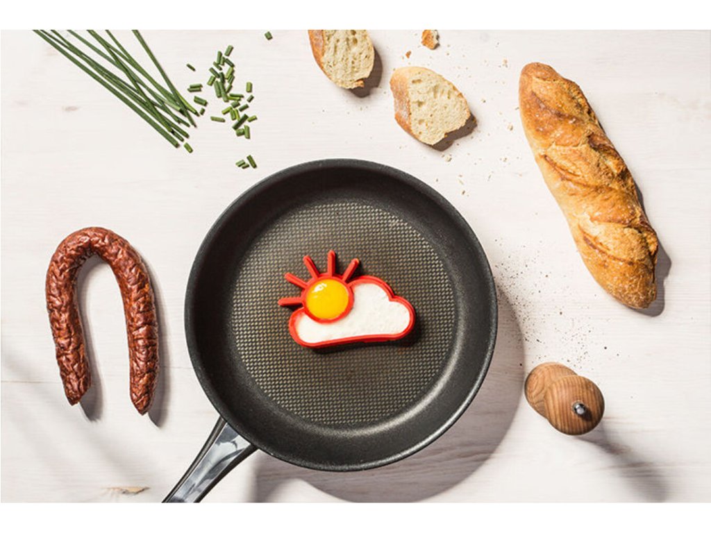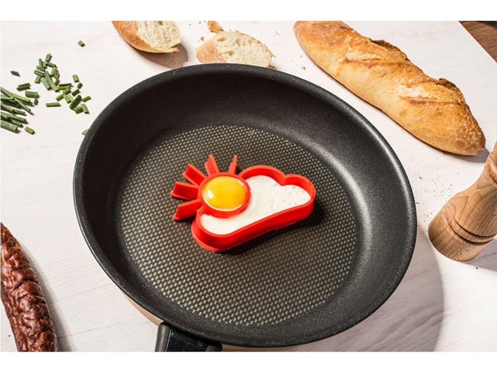 Prekvapte svoje deti skvelými raňajkami v podobe vaječných slniečok a mráčikov . Silikónová forma na vajíčka v tvare slnka a mraku vytvorí na panvici z rozklepnutého vajca veselé mráčiky , ktoré môžete ozdobiť zeleninou a podávať deťom ako raňajky . Deti si Vaše raňajky rýchlo obľúbia a budú sa na ne tešiť. Volské oká z kvalitnej silikónovej formy v tvare slnka a mraku sa stanú populárne v celej rodine. Silikónové formy na vajíčka - slnko a mrak sú originálny darček do kuchyne .