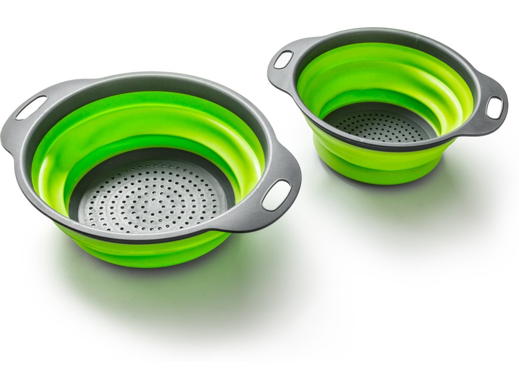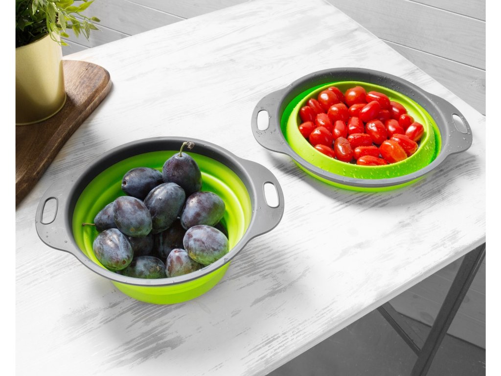 Praktické, ľahko použiteľné, často užitočné a navyše zaberajú málo miesta, to sú naše silikónové cedníky :) Skvele sa hodí na scedenie cestovín alebo ryže, oplachovanie zeleniny a ovocia. Vďaka plochému plastovému dnu ich môžete umiestniť nad hrniec alebo umývadlo alebo priamo postaviť.
