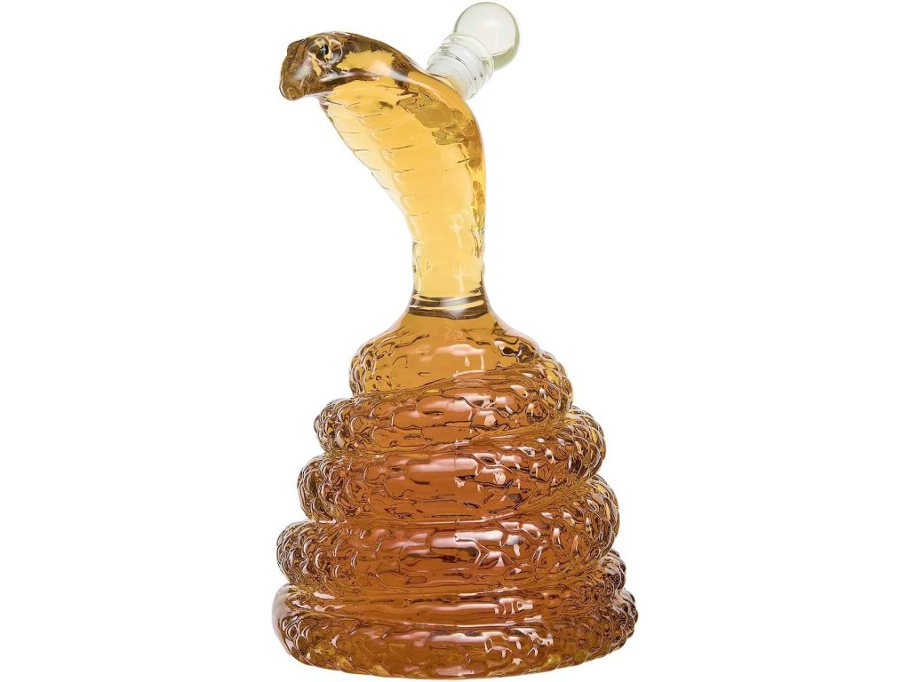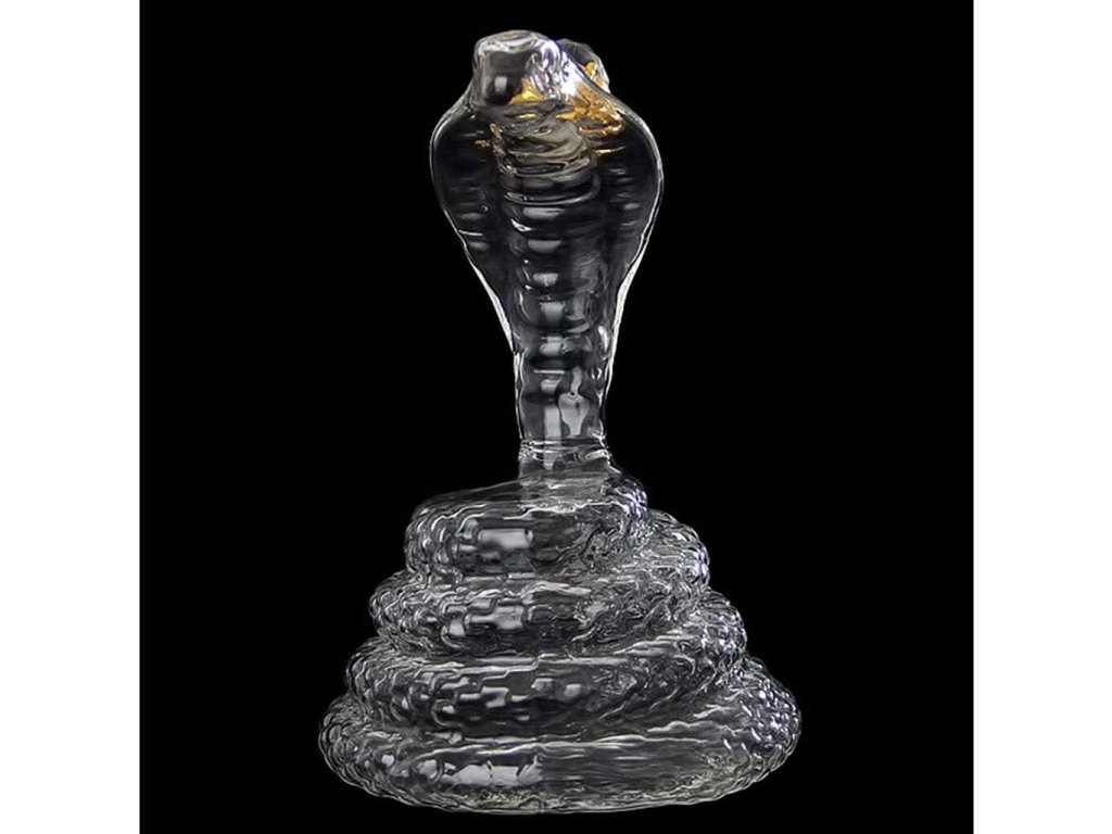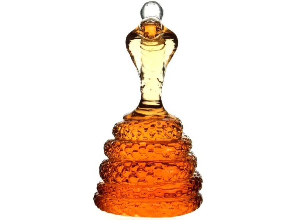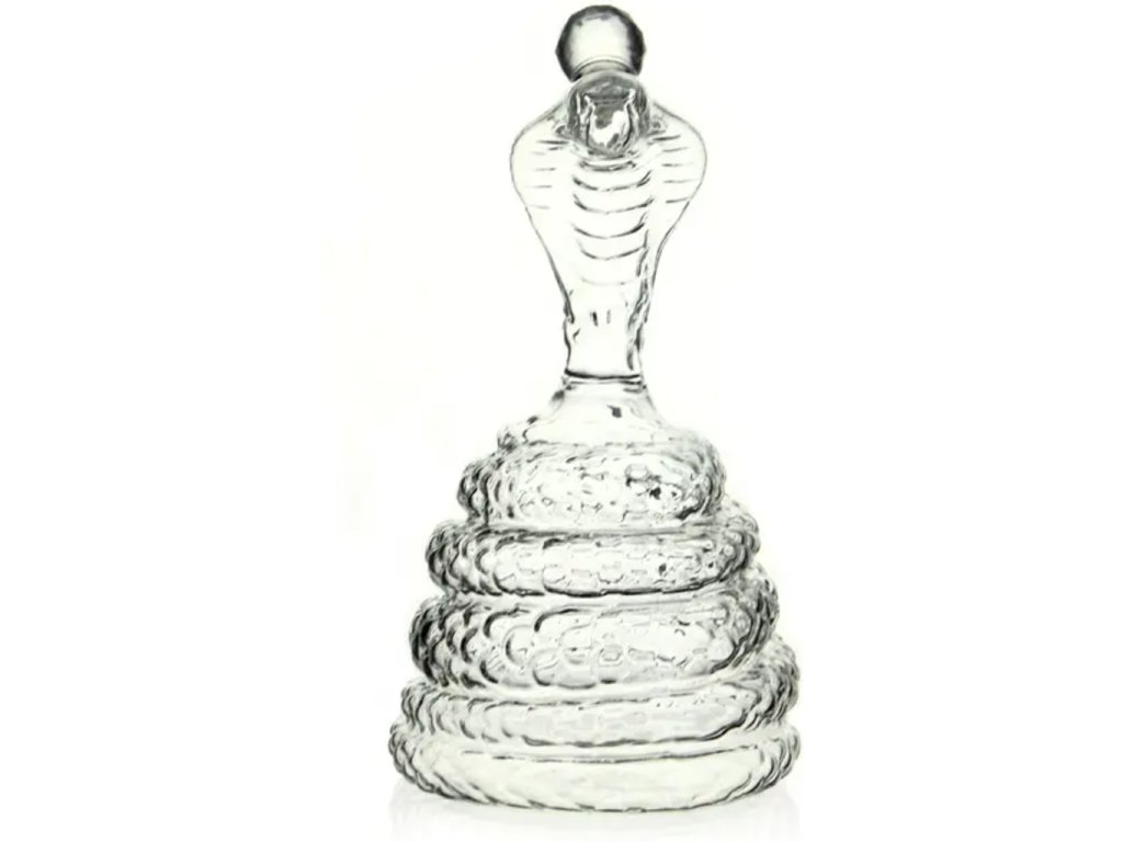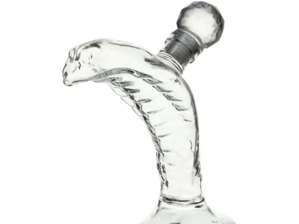Sklenená karafa s hadom v tvare kráľovskej kobry pripomína stočeného elegantného hada pripraveného zaútočiť. Karafa je ručne tvarovaná a zámerne umiestnená tak, aby zobrazovala odpočinkovú polohu kobry kráľovskej. Kobra kráľovská je dôležitým symbolom v mytológii a ľudových tradíciách. Vytvára krásny a elegantný stredobod stola. Vaši hostia alebo návštevníci budú diskutovať o jej elegantnom spracovaní.