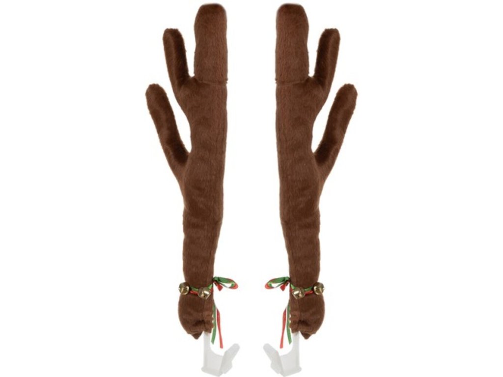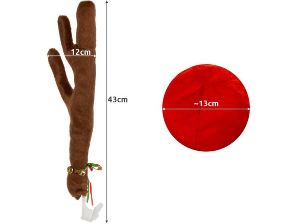 V tak špeciálnom období, ako sú Vianoce , si užívame každé dekorácie . A predovšetkým taký, ktorý je s nami takmer neustále. V tejto špeciálnej dobe sa vám bude určite hodiť sada sobiech rohov a nosa . Súprava obsahuje veľký, červený a okrúhly nos. Je to mäkké. Vyrobené z materiálu imitujúceho kožušinu a vypchaté vatelínom. Navyše má drôt na pripevnenie na prednej maske auta. V elmi odolné dva veľké rohy s rolničkami pripevnenými na stuhách vo vianočných farbách (zelená a červená). Zvončeky je možné uviazať kdekoľvek v rohoch, alebo použiť na iné dekorácie. Rýchla a jednoduchá montáž oblečie vaše auto počas pár chvíľ. Rohy majú plastové držiaky na pripevnenie ku sklu. Nos je vybavený pružným drôtom na pripevnenie k prednej časti vozidla.