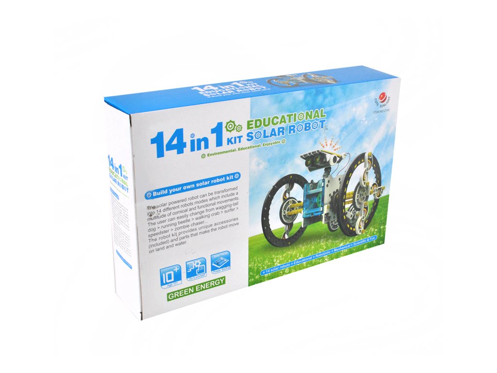 Ukážte svojim deťom výhody solárnej energie hravým spôsobom a kúpte im túto stavebnicu so solárnym panelom, SolarBot 14v1 . V dnešnej dobe sú solárne panely populárnym a ekologickým zdrojom energie. Zapojte svoje deti do tohto boomu! Túto solárnu hračku je možné prestaviť do 14 rôznych hračiek, ktoré zahŕňajú veľké množstvo komických a funkčných pohybov, pričom nie je potrebný žiadny skrutkovač ani lepidlá. Hračka sa môže ľahko zmeniť z vrtiaceho chvosta, bežiaceho chrobáka, kraba, surfera, speedstera alebo na „zombie naháňačku“. Súprava robotov poskytuje jedinečné príslušenstvo (súčasťou balenia) a súčasti, vďaka ktorým sa robot pohybuje po zemi a po vode. Stačí trocha zručnosti. SolarBot 14v1 je originálny darček pre deti .