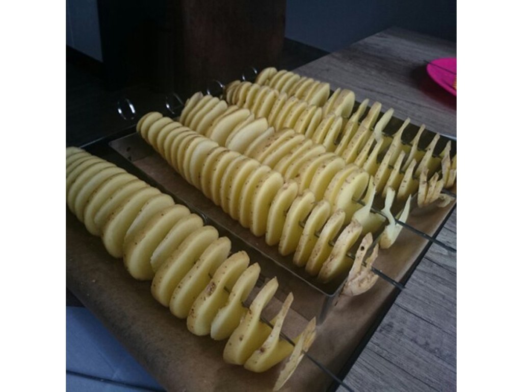 Očakávate návštevu a chcete im pripraviť originálne pohostenie? Zaobstarajte si tento originálny špirálový krájač na zemiaky. Špirálový krájač na zemiaky Vám nakrája zemiaky do krásnych špirál , ktoré môžete dať napríklad do friťáku alebo do rúry. Zo špirál môžete urobiť prílohu k hlavnému chodu alebo len maškrtenie na stôl. Špirálový krájač na zemiaky je originálnym pomocníkom do každej domácnosti . Určite to ocenia všetci milovníci zemiakových pochúťok.