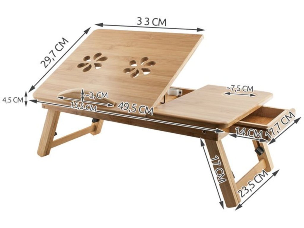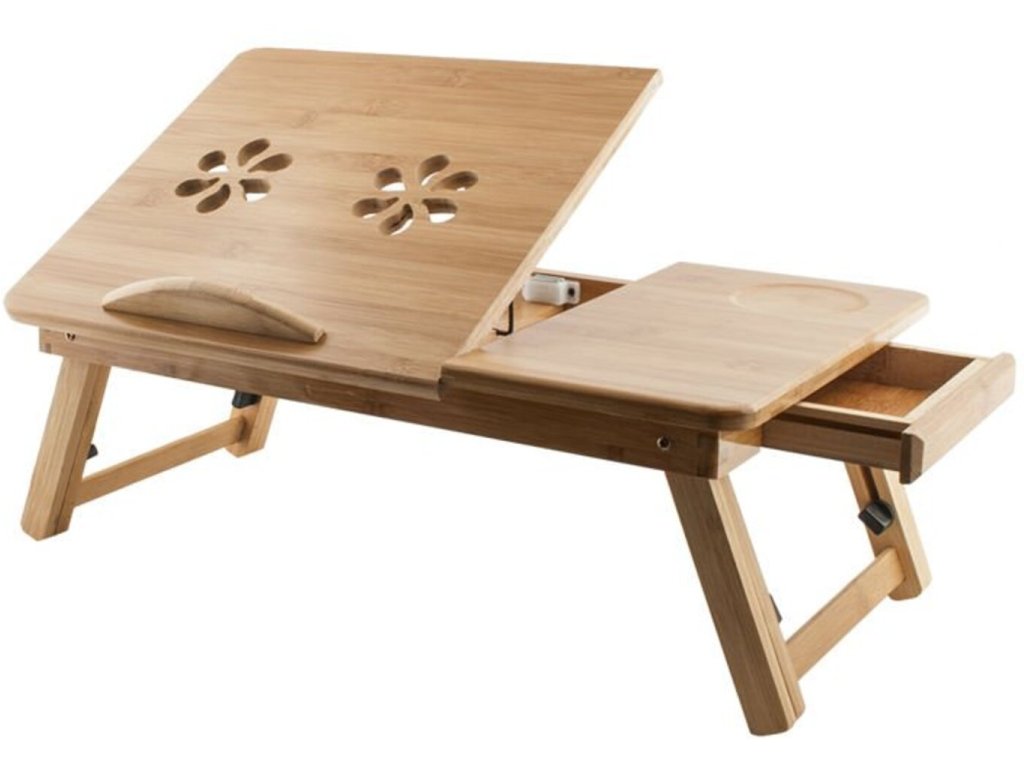 Pracujete často do noci a nechce sa Vám neustále sedieť pri pracovnom stole? Prečo si nevziať počítač aj s prácou do postele ? Tento praktický drevený stolček Vám aj v posteli dopraje toľko potrebné pohodlie počas práce s PC. Je určený pre notebooky do veľkosti až 15 palcov, a preto sa hodí takmer každému. Je ľahko zložiteľný, prenosný a všetky drobnosti istí vstavaná zásuvka. Darček vhodný pre každého pracanta.