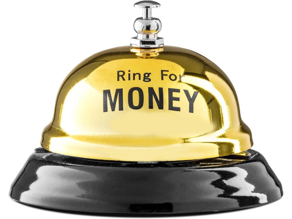 - nápis na zvončeku „Zvoňte o PENIAZE“