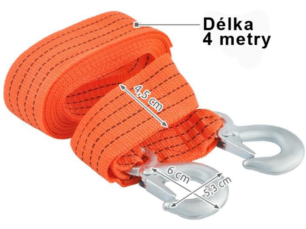 Široké ťažné lano, vyrobené z materiálu odolného proti pretiahnutiu a praskaniu. Je ideálny pre ťahanie vozidla inými vozidlami. Spĺňa všetky bezpečnostné normy