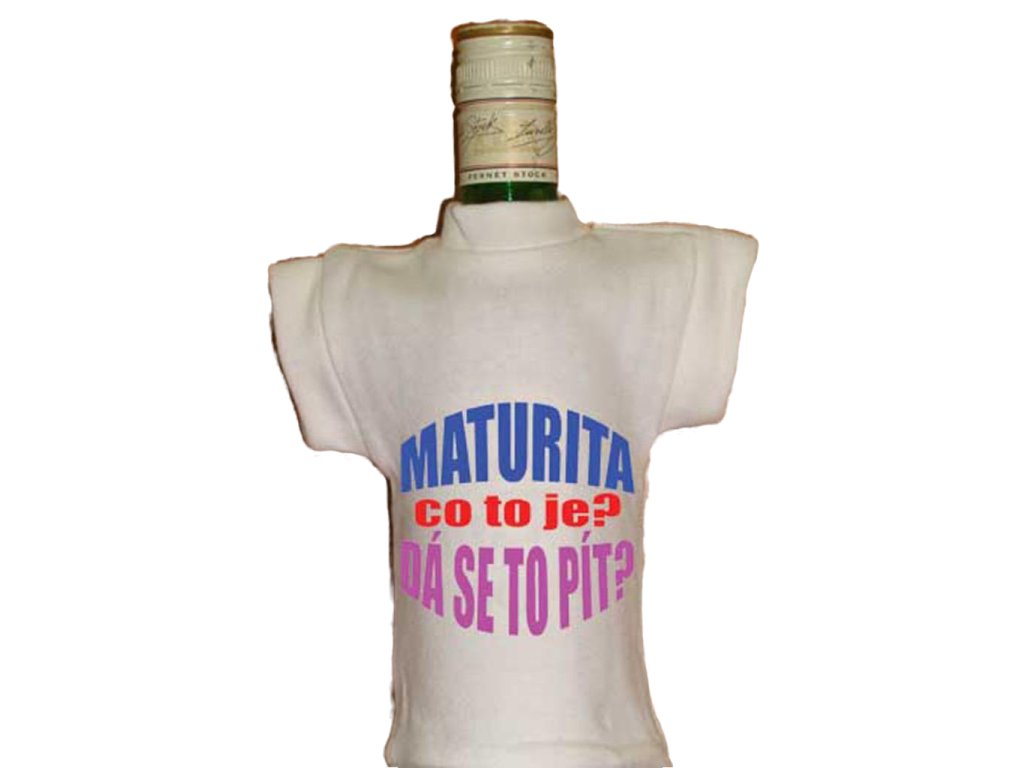 Váš kamarát oslavuje úspešnú maturitu , darujte mu k jeho veľkej sláve fľašu dobrej liehoviny odetu vo vtipnom tričku s humorným nápisom . Tričko na fľašu - Maturita je humorným prebalom na darovanú fľašu . Toto tričko urobí radosť každému, kto má zmysel pre humor. Oslávte narodeniny, sviatok, promóciu alebo lúčenie so slobodou . Humorné tričká na fľašu vykúzlia úsmev na tvári každému. Tričko si potom možno schovať na pamiatku. Tričko na fľašu - Maturita , je originálny darček na oslavu .