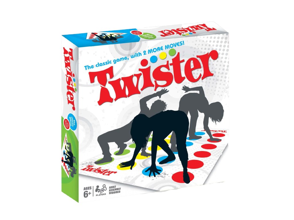 Užite si na party neskonalú zábavu s touto originálnou hrou . Twister môžu hrať dvaja až štyria hráči a naozaj sa pri nej zasmejete. Princíp je jednoduchý: roztočte šípku a podľa toho, na čo ukáže, dajte vybranú končatinu na príslušnú vyžrebovanú farbu. Spočiatku sa to môže zdať jednoduché, ale neskôr budete skrútení do neskutočných pozícií a prepletení navzájom. Kto vydrží najdlhšie, vyhráva! Originálny darček pre Vás a Vašich priateľov.