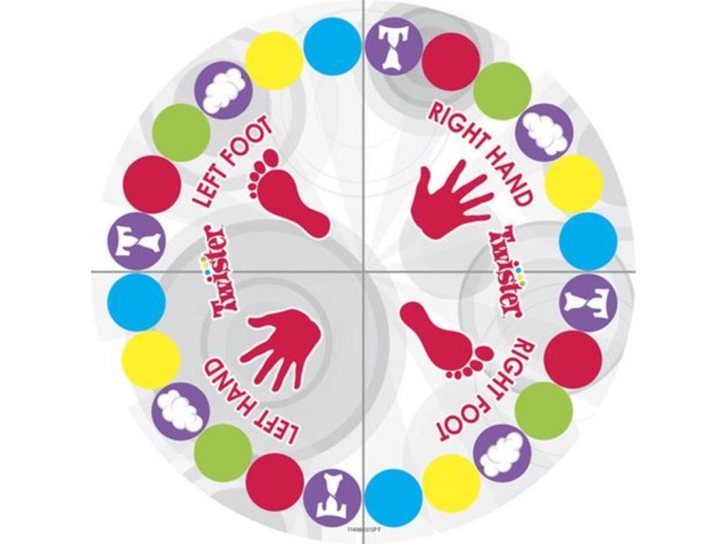 Užite si na party neskonalú zábavu s touto originálnou hrou . Twister môžu hrať dvaja až štyria hráči a naozaj sa pri nej zasmejete. Princíp je jednoduchý: roztočte šípku a podľa toho, na čo ukáže, dajte vybranú končatinu na príslušnú vyžrebovanú farbu. Spočiatku sa to môže zdať jednoduché, ale neskôr budete skrútení do neskutočných pozícií a prepletení navzájom. Kto vydrží najdlhšie, vyhráva! Originálny darček pre Vás a Vašich priateľov.