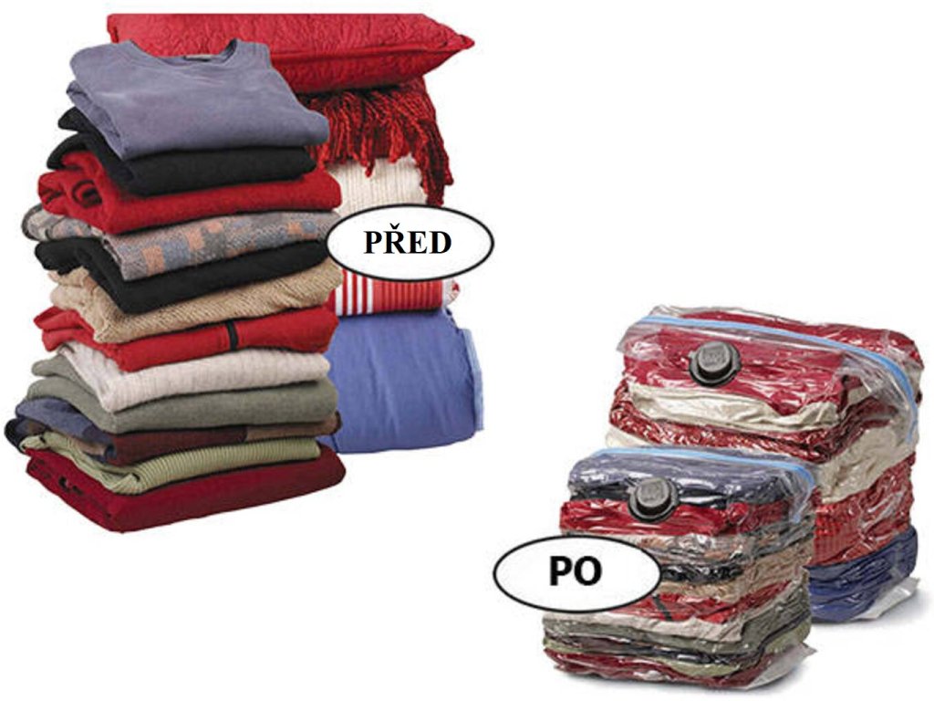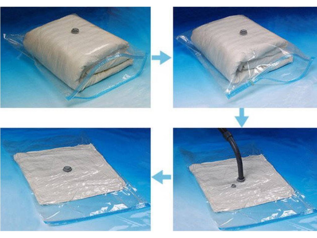Ak máte doma veľa oblečenia, obliečok, prestieradiel či iných tkanín a potrebujete ich uskladniť, vákuové vrece pre Vás predstavuje správne riešenie. Vďaka nemu totiž ľahko uskladníte veľký objem tkanín do menšieho priestoru. Celá technológia je založená na princípe odsatia vzduchu, vďaka čomu sa objem vreca zmenší až o dve tretiny. Naskytne sa Vám tak možnosť uložiť nepotrebné textílie oveľa efektívnejšie a prehľadnejšie. Praktický darček do domácnosti .