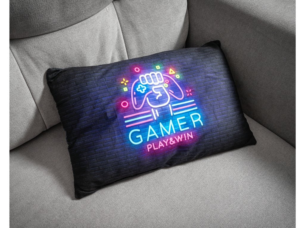 Vankúš Gamer Play&Win prináša nielen pohodlie, ale aj štýl priamo do vášho herného kútika! Jeho čierna základňa dopĺňa neonový dizajn inšpirovaný videohrami s motívom ovládača a energickým nápisom "Play&Win". Tento poľský vankúš je ideálnou voľbou pre každého hráča, ktorý si chce užívať dlhé herné sedenia s maximálnym pohodlím a zároveň zdôrazniť svoju vášeň pre gaming. Vankúš Gamer Play&Win skvele doplní herný setup, najmä ak používate osvetlenie RGB. Vankúš Gamer Play&Win je nevyhnutný doplnok každého nadšenca do hier. Doprajte si pohodlie a ukážte svoju hernú vášeň!