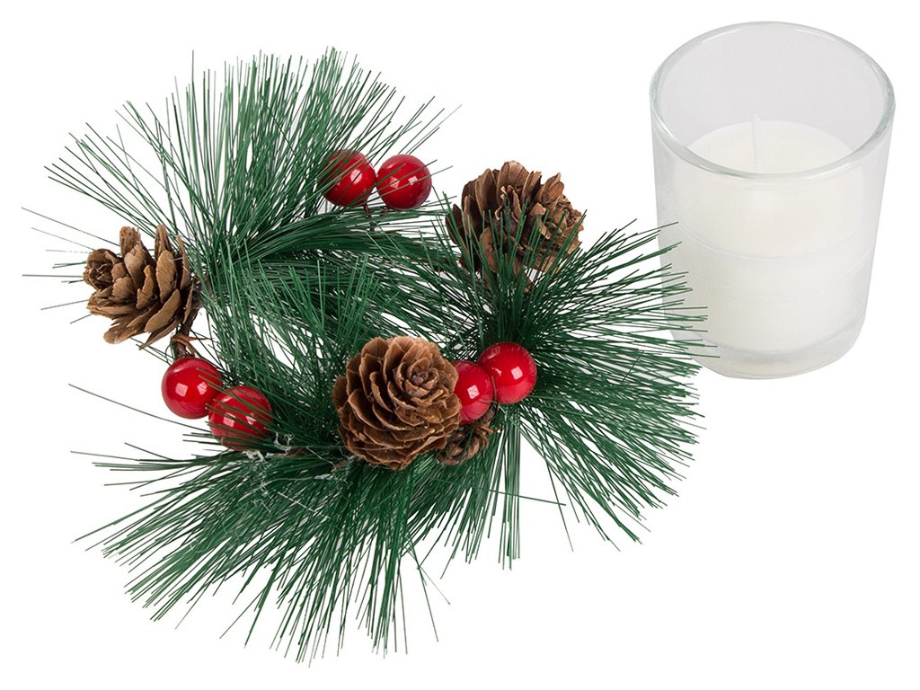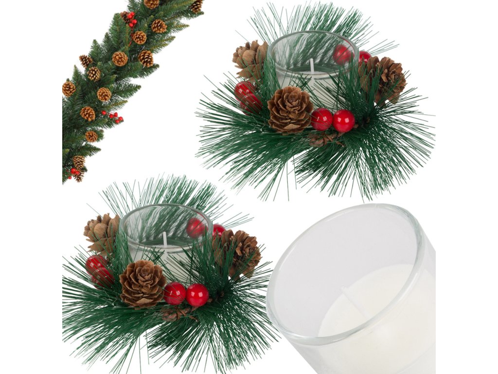Vianočná výzdoba - sviečky 2 ks sú dokonalým doplnkom, ktorý dodá vašemu domovu kúzelnú atmosféru počas vianočných sviatkov. Tieto elegantné sviečky, zdobené umelými vetvičkami borovice, ihličím a červenými bobuľami, prinesú príjemné svetlo a teplú atmosféru do každého interiéru. Skvele sa hodia ako ozdoba na stôl, poličku alebo krb, ale aj ako štýlový darček pre vašich blízkych. Vďaka ich dizajnu navodíte pocit útulnosti a pohody počas zimných večerov.