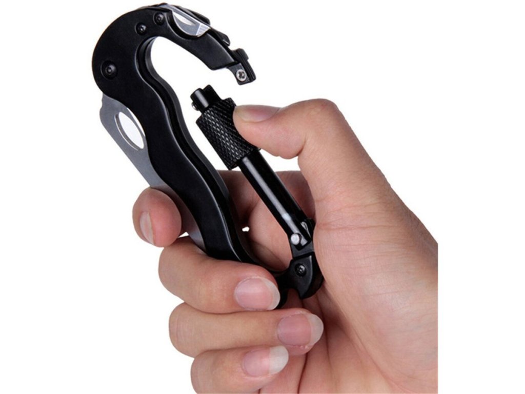 Chystáte sa kempovať v prírode alebo sa chcete vydať napríklad do lesa na huby? Chcete byť pripravení na každý problém, ktorý by mohol nastať? Zaobstarajte si viacúčelovú karabínu 6v1. Viacúčelová karabína 6v1 má v sebe zabudovaný nožík, vďaka ktorému si dokážete nakrájať a očistiť nielen huby, ale pílku, ktorá Vám pomôže pripraviť drevo na oheň. Môžete si tiež otvoriť fľašu. Všestranný pomocník za každej situácie. Karabínu si jednoducho pripnete na pútko nohavíc alebo na batoh a môžete vyraziť. Výborný spoločník do prírody, na hory, do lesa alebo na túru.