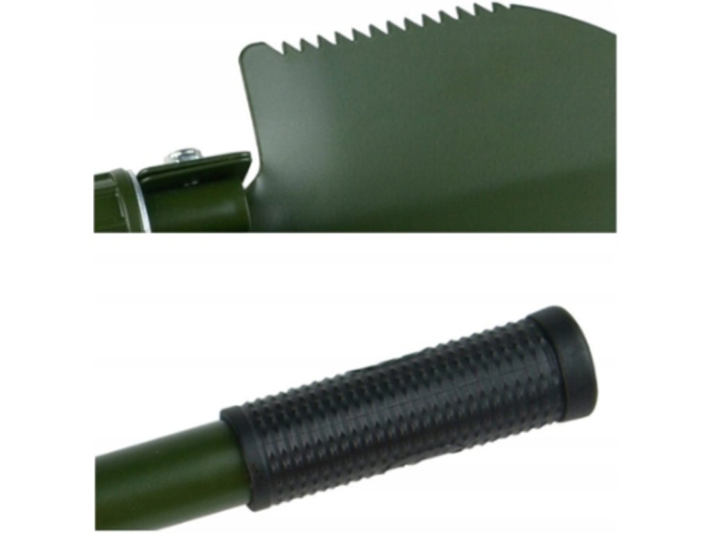 Výrobok je vyrobený z vysoko kvalitnej ocele odolnej voči prevádzkovým podmienkam. Veľmi užitočné v lese, na pozemku alebo v aute. Lopata je skladacia, dá sa rýchlo a ľahko zložiť, pričom zaberá veľmi málo miesta. Rukoväť je vyrobená z protišmykového plastu.