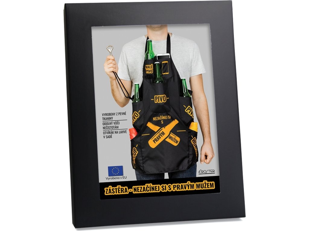 Nie je nič nebezpečnejšie, než plne vybavený trvrďák , ktorý sa nebojí siahnuť po pive. Táto nepremokavá záster a so 7 vreckami nielen na pivo zaručia, že nikdy nebudete vyvedení z miery. S vreckami na pivo, kečup, horčicu a telefónny mobil budete mať všetko vždy po ruke. Vďaka pevnej tkanine z polyesteru odoláva zástera nečistotám a zároveň sa ľahko umýva a nestráca farbu. To všetko v elegantnom čiernom puzdre, ktoré poteší každého muža. Ideálny darček pre chlapákov a majstrov grilu.
