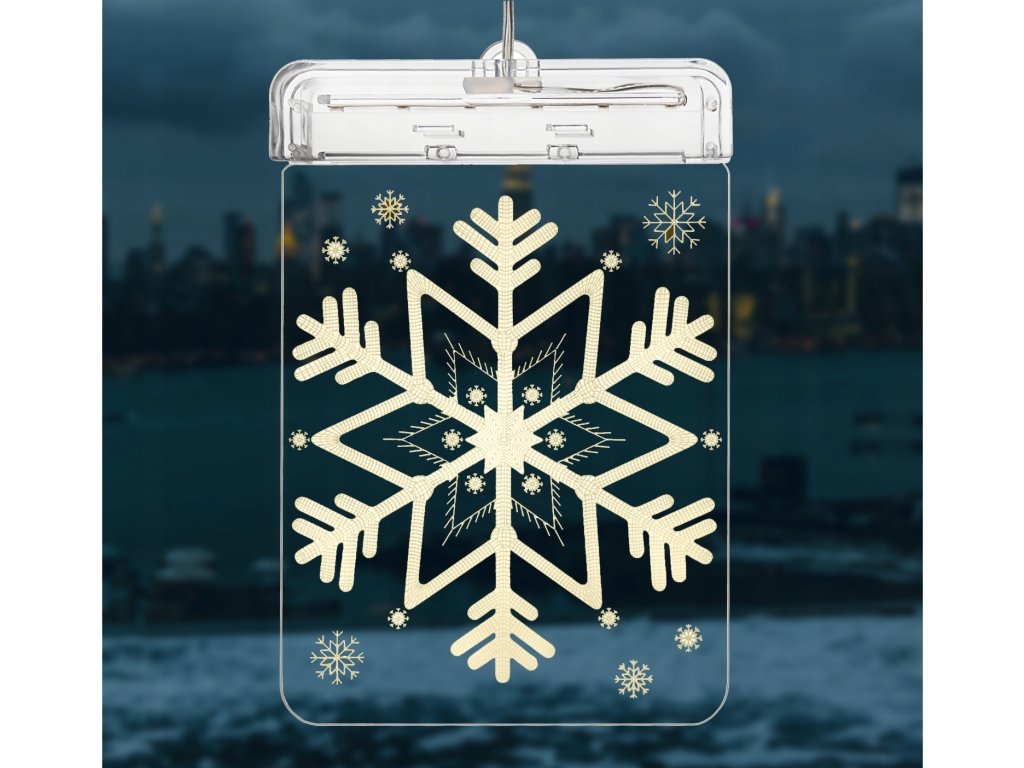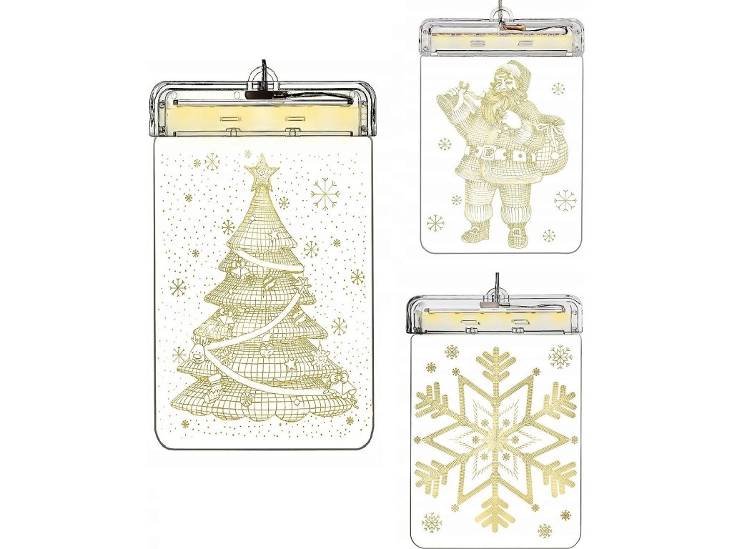 Závesná vianočná 3D LED dekorácia svietiaca je obojstranná, vďaka čomu bude po zavesení na okno vyzerať krásne vo vnútri aj vonku . Vitrážová doska je vyrobená z odolného plastu s potlačou prevedenou laserovým gravírovaním . V itráž je napájaná batériami, takže sa nemusíme báť o dostupnosť zdroja energie. Svietiaca dekorácia môže ozdobiť prakticky akýkoľvek povrch, napríklad okno, aj na neštandardných miestach - bez káblov a predlžovacích šnúr . V itráž má mnoho využití, možno ju použiť ako vianočnú dekoráciu, ale aj ako nočnú lampu vytvárajúcu romantickú atmosféru. Pozlátko sa osvedčí napríklad v detskej izbe . Na zavesenie ozdoby slúži priehľadná prísavka upevnená na nádobe batérie. Je dômyselne schovaný a prakticky neviditeľný. ktorá neruší výzdobu.