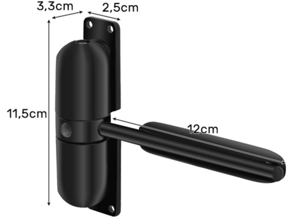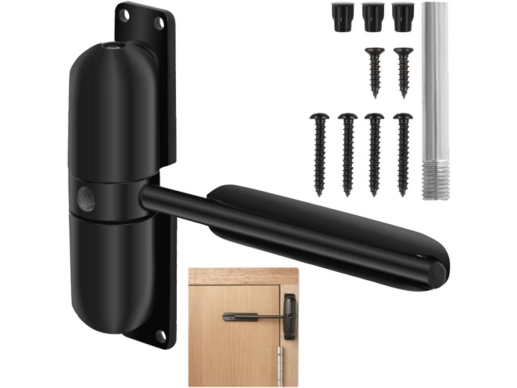 Usnadněte si život s naším černým zavíračem dveří! Představujeme vám revoluční řešení, které promění každé zavření dveří v zážitek. Už žádné bouchání nebo zbytečný hluk díky plynulému, tichému chodu našeho produktu. Navrženo pro dveře do 60 kg, ať už máte standardní, bezpečnostní nebo protipožární dveře – náš zavírač to zvládne! Montáž je hračka! Univerzálnost montáže umožňuje instalaci dle vašich potřeb – zdola, uprostřed, či shora. Naše kompletní montážní sada obsahuje vše potřebné, takže nemusíte nic dokupovat. Ať už jste pravák nebo levák, tento zavírač je nastavitelný přesně pro vás. Nedovolte, aby vás hlučné dveře rušily. Objednejte si nyní a zažijte komfort, který si vaše domácnost zaslouží!