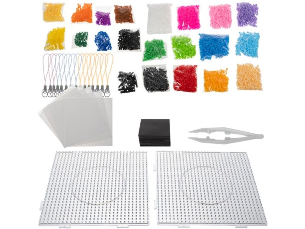 Súprava na výrobu príveskov na kľúče, dokonale ovplyvňujú kreativitu a predstavivosť, čo sa oplatí v mnohých ďalších oblastiach života. Nažehľovacie prívesky na kľúče vyžadujú veľa sústredenia, presnosti a trpezlivosti. Je to spôsob, ako sústrediť svoje myšlienky iba na túto činnosť, takže sa môžete zbaviť stresu a dočasne sa odrezať od každodenného života. Výsledný efekt urobí dojem nielen na toho, kto prívesok pripravil, ale aj na každého, kto takú kľúčenku uvidí. Súprava obsahuje 20 rôznych farieb korálikov: biela, čierna, hnedá, 2 odtiene žltej, 2 odtiene oranžovej, béžovej, 2 odtiene ružovej, 2 odtiene fialovej, červená, šedá, 3 odtiene zelenej, 3 odtiene modrej . Jedna sada obsahuje až 6500 korálikov, čo vám umožní vyrobiť mnoho figúrok . Súprava obsahuje kompletnú sadu pre skvelú zábavu. 2 štvorcové formy a 15 hotových vzorov so zvieratkami donútia dieťa ochotne aranžovať a hrať sa s korálkami. Vytvorí farebné obrázky a možností je mnoho. Môžete tvoriť podľa šablóny alebo použiť vlastnú fantáziu. Vytvorením niekoľkých vrstiev šablóny môžeme vytvoriť 3D postavy!