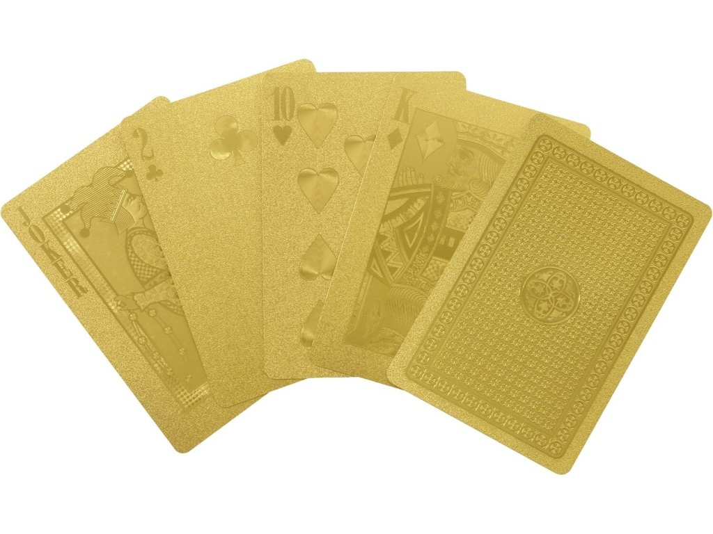 - Karty sú vyrobené z plastu a potiahnuté pozlátenou fóliou