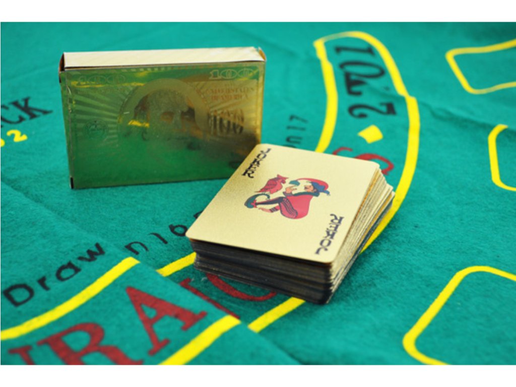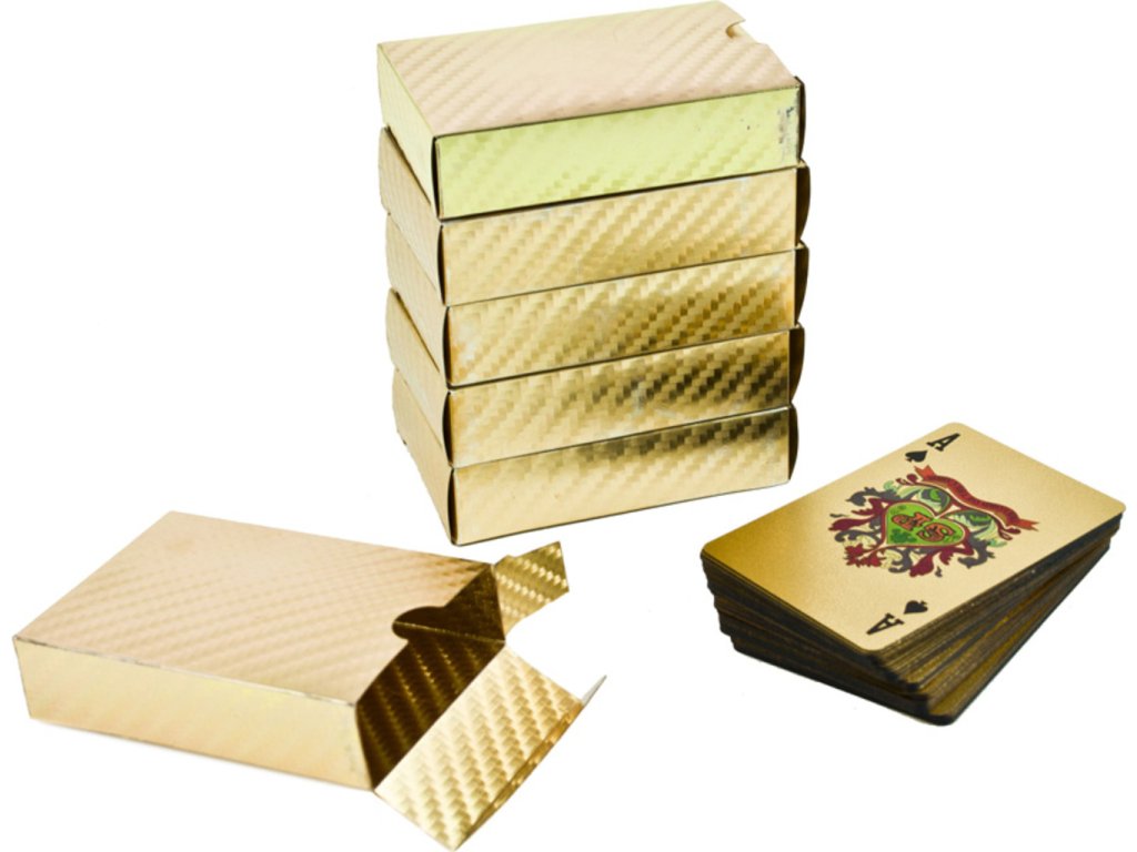 Zahrajte sa s priateľmi žolíkmi ako skutoční aristokrati. Tieto zlaté karty sú prepychovou záležitosťou a zahrať si s nimi kartovú hru je skutočne zlatou zábavou. Zlaté karty sú skutočne celé zo zlata. Prekvapte svojich priateľov a trochu sa vytiahnite týmto luxusom. S týmito kartami sa Vám bude určite dobre hrať a budete vyhrávať. Zlaté karty sú originálny darček pre každého, kto nie len rád hrá karty , ale kto sa chce aspoň na chvíľu cítiť ako boháč. Tento jedinečný darček urobí radosť napríklad Vášmu kamarátovi alebo rodičom.
